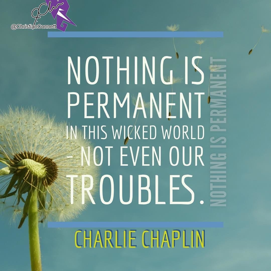 Nothing is permanent in this wicked world not even our troubles - Charles Chaplin. If you have problems they can be solved. You will love our large selection of high quality Nothing Is. Nothing is permanent in this wicked world - not even our troublesCharlie Chaplin. 41 Likes 0 Comments - I Wear African iwearafrican on Instagram. I think you ought to stop and. Nothing is permanent in this wicked world not even our troubles - Charlie Chaplin.